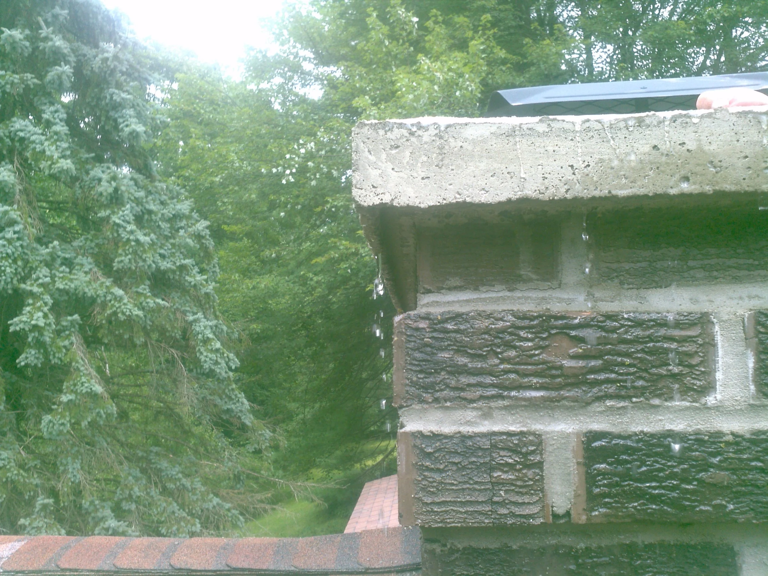 Our premium concrete crown replacements have the same features as our standard concrete crown, with a few extra details that make it stand out as a superior repair. The first difference is that we build forms into which the concrete is poured. The forms allow the crown to extend beyond the edge of the chimney. The second feature is on the underside of the extension. We build the form in a way that leaves an indentation on the underside. When water comes off the crown, its surface tension carries it right back toward the chimney. That indentation stops that movement and forces the water to form a drop, which then falls away from the face of the chimney.